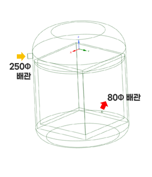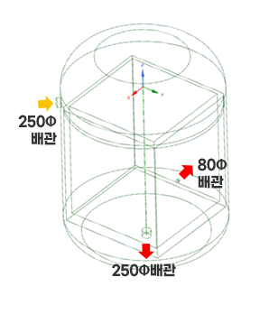 80Φ 내부탱크 하단 , 250Φ 외부탱크 바닥 |